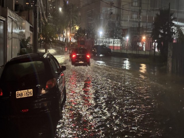 Um dos pontos mais críticos foi a avenida Presidente Juscelino Kubitschek, no bairro Monte Castelo, onde a água cobriu a pista nas proximidades da loja Havan e um carro ficou praticamente submerso.